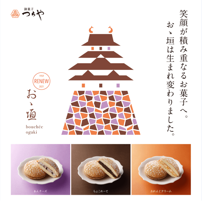 株式会社槌谷(本店:岐阜県大垣市俵町39番地、代表取締役:堀 富則)が製造および販売を手掛ける、御菓子つちやの「おゝ垣」がこの度リニューアルし、2021年10月より販売しております。