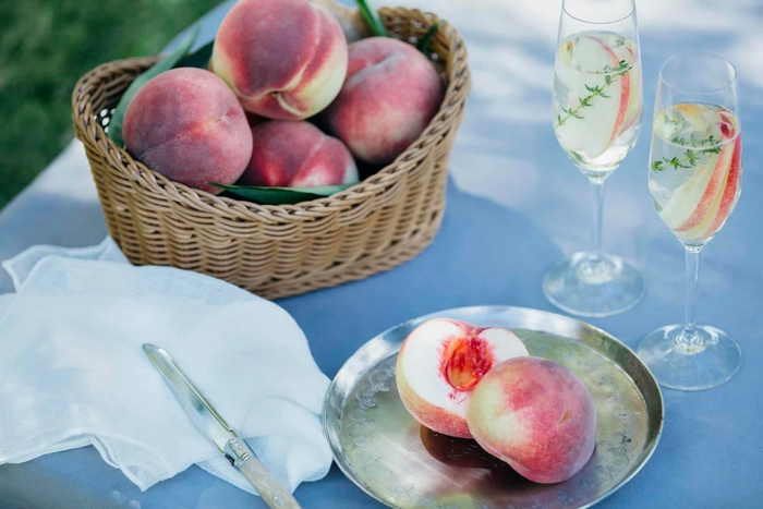 8:30 採れたての桃とスパークリングワインを楽しむ