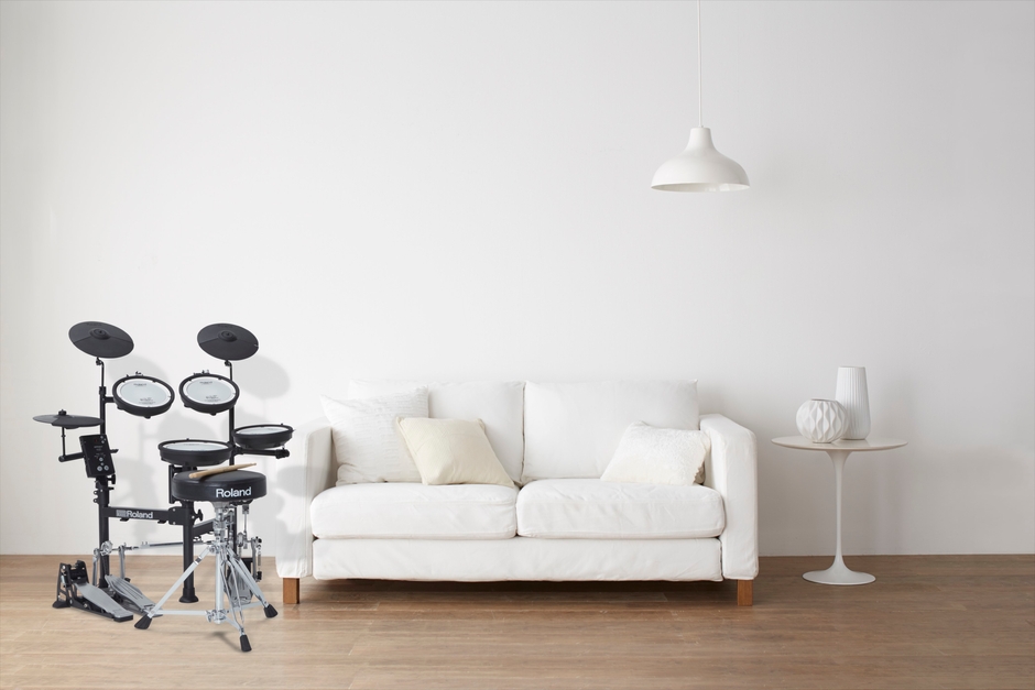 ローランドの電子ドラム「Vドラム・シリーズ」は、1997年の発売以来、電子楽器ならではの多彩な機能と、本格的な演奏を楽しめる電子ドラムとして、ステージ用から自宅練習用まで豊富なラインアップを揃え、プロ・ミュージシャンから初心者の方まで、幅広くご愛用いただいています。2016年に発売した「TD-1KPX-S」は、幅1m、奥行き1.2mという狭いスペースで演奏可能な、自宅練習にも最適なモデルとして高い評価を得ています。