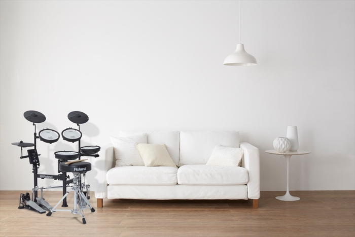 ローランドの電子ドラム「Vドラム・シリーズ」は、1997年の発売以来、電子楽器ならではの多彩な機能と、本格的な演奏を楽しめる電子ドラムとして、ステージ用から自宅練習用まで豊富なラインアップを揃え、プロ・ミュージシャンから初心者の方まで、幅広くご愛用いただいています。2016年に発売した「TD-1KPX-S」は、幅1m、奥行き1.2mという狭いスペースで演奏可能な、自宅練習にも最適なモデルとして高い評価を得ています。