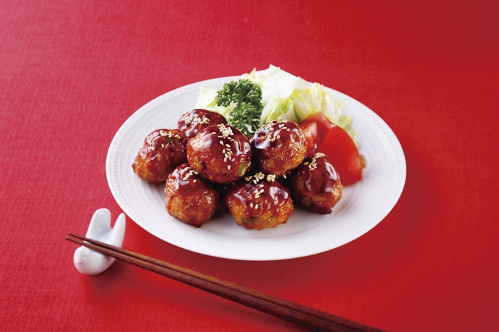 5種類の野菜(枝豆・玉ねぎ・にんじん・キャベツ・れんこん)を使用したライフオリジナルの肉団子。枝豆のごろっとした食感と野菜のシャキシャキ食感をお楽しみいただけます。熟成蔵出し黒みりんを使用した旨味とコクがある肉団子専用の甘酢たれを使用しています。