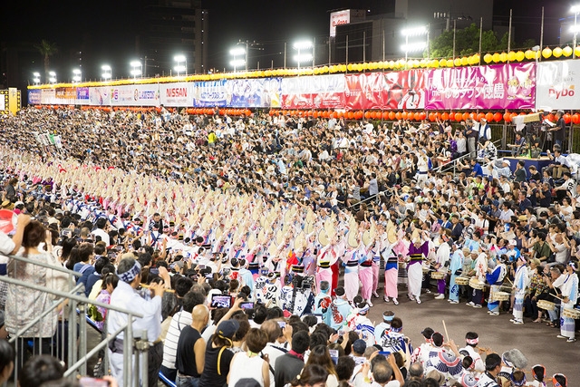 今日、日本全国にて町おこしの一環として開催されている「阿波おどり」、本場・徳島市では毎年8月12日から15日までの4日間(前夜祭を含むと5日間)、約850の踊りのグループ「連(れん)」が参加、国内外から約100万人を超える観光客が訪れる日本有数のフェスティバル(祭り)。