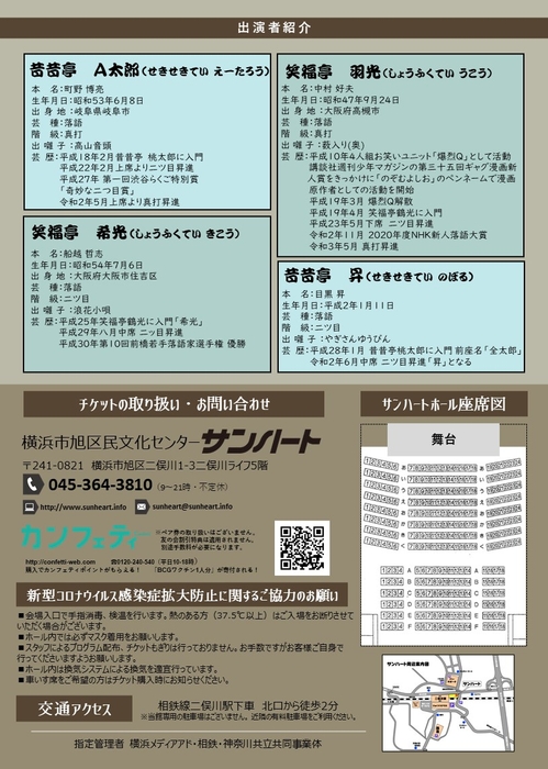 会場:横浜市旭区民文化センター サンハート ホール(神奈川県横浜市旭区二俣川1-3二俣川ライフ5F)