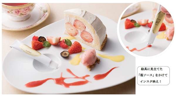絵具に見立てた「苺ソース」をかけて、自分だけのオリジナルスイーツをお愉しみください。