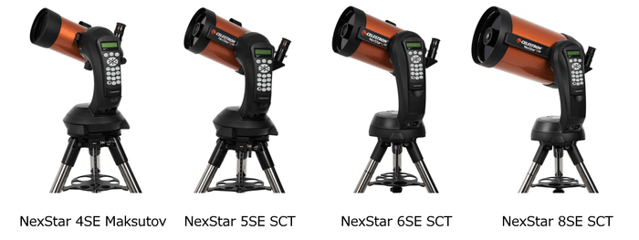 今回販売を開始する製品は、自動導入式架台NexStar SEシリーズに、セレストロン伝統のオレンジカラーを基調とする各鏡筒を搭載した以下4機種です。