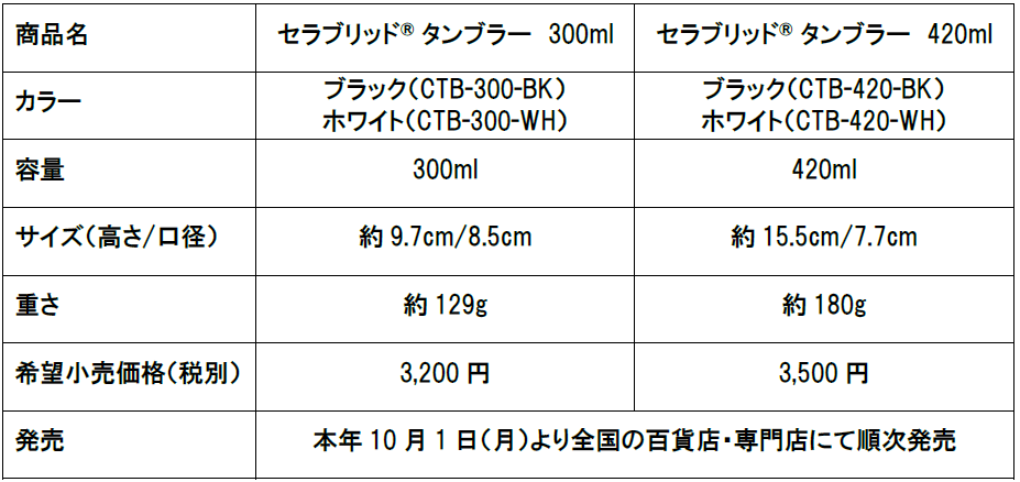 京セラ株式会社(社長:谷本 秀夫)は、セラミックキッチングッズの新商品として「セラブリッド(R) タンブラー」を商品化し、本年10月1日(月)より全国の百貨店・専門店にて順次、販売を開始いたします。