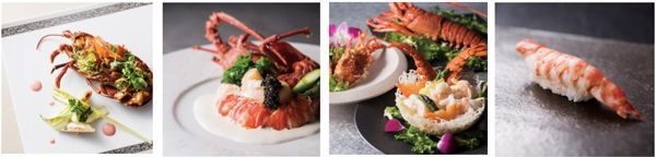 4種の海老を使用した色彩豊かなフランス料理に、キャビアを添えた活伊勢海老はステーキとともに鉄板焼で、他にも3種の海老の持ち味に合わせて仕立てたお寿司、お客様の好みに応じて調理法を変える伊勢海老の中国料理をご用意いたします。胸をふるわせる感動的な美食体験と最高のおもてなしにご期待ください。