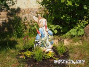 ピーターラビットの絵本シリーズに描かれている名シーンを、英国風庭園コッテージガーデンやその他エリア内各所に演出します。