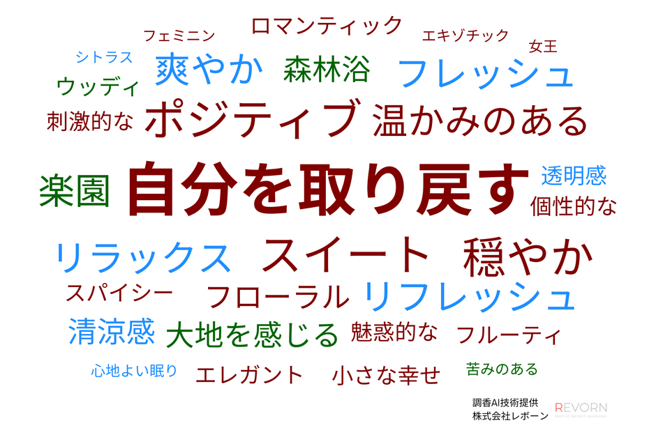 最初に分かりやすいイメージワードを用意することで香り選びの難しさを取り除き、より親しみやすくしています。