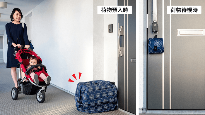 「OKIPPA」は煩雑な再配達受け取りを不要にする吊り下げ式簡易宅配ボックスです。