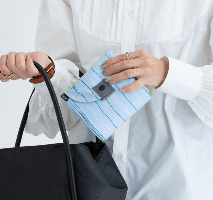 2020年10月には「エシカル & サステナブル」を掲げ、年末にRENU30%で製造したOKIPPAを提供、2021年4月にはバッグ部分(ボタンやファスナー等は除く)を全て100%RENUとするバッグを製造開始することでより高い環境負荷低減効果を実現しています。