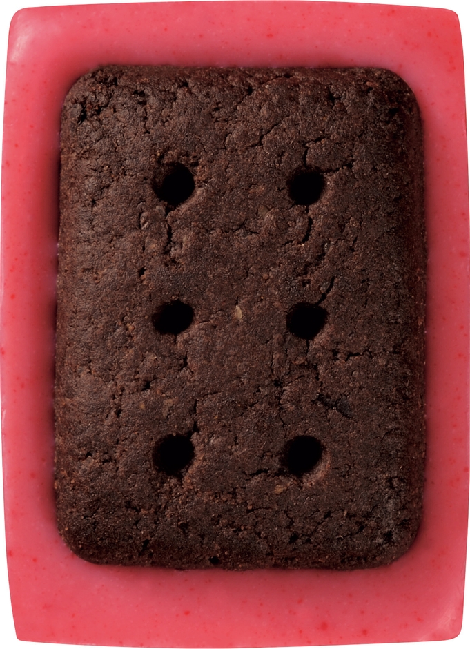「アルフォートミニチョコレートプレミアム濃苺」は、甘酸っぱい苺パウダーを練り込んだチョコレートと、全粒粉入りのココアビスケットを組み合わせました。チョコレートとビスケットの絶妙なおいしさに加え、苺の濃厚な味わいをお楽しみいただけます。チョコレートとビスケットの配合を見直し、全体的な味のバランスを向上しました。