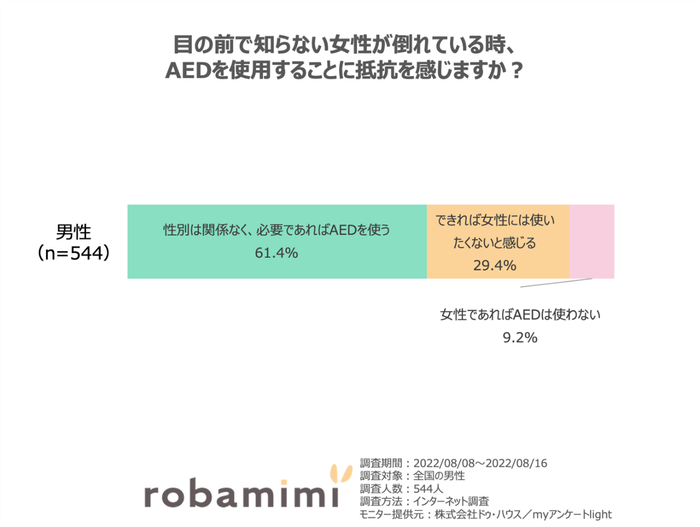 「AEDはみんなが知っているけど、使い方はわからない」、「女性にAEDの使用をためらう男性は4割」など、気になる調査結果を公開 URL: https://www.moratame.net/wp/robamimi/