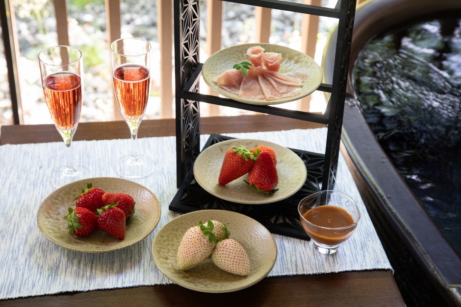 16:30 客室露天風呂でいちごの食べ比べを楽しむ