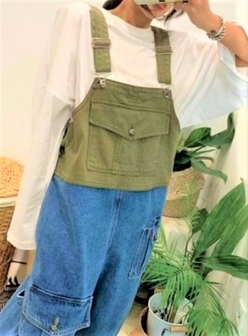 大流行のオーバーオールデニムパンツでもこの2カラーはなかなか見ないオシャレデザインです。