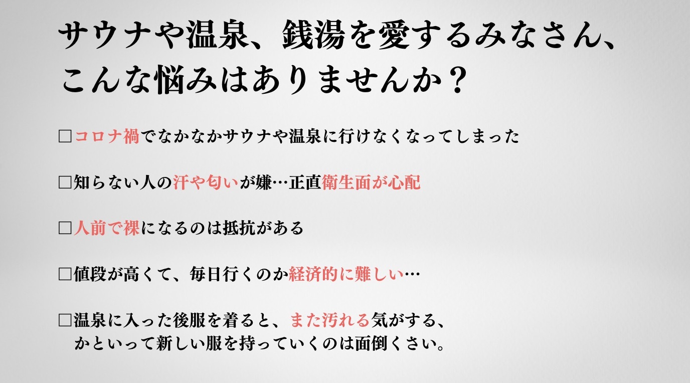 近年注目を浴びているサ活ブームですが、コロナの影響で密集している場所に行くのはこわい、なんて方も多いのではないでしょうか。また中には「他人の汗や菌が気になる」「マナーが悪い人が多くてイライラ!」「もっと通いたいけどお金が…」というお声もよく聞いてきました。