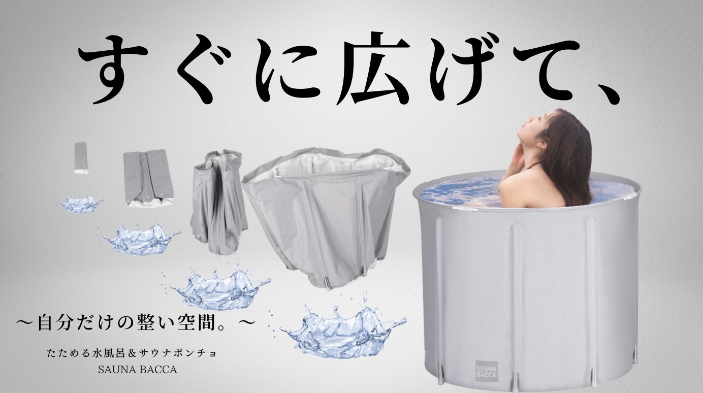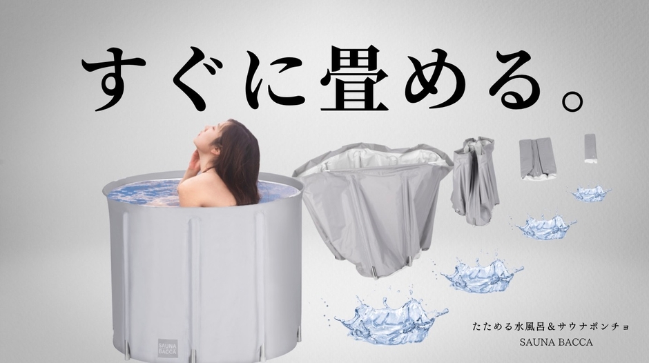 おうちが“ととのう”サウナ空間に たためる水風呂とコットンサウナポンチョの先行予約販売開始! 熱いお風呂で汗をかきキンキンの水風呂で「ととのう」!
