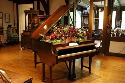1920年頃に製作された自動演奏ピアノを花器に見立てたフラワーアレンジメントを展示します。