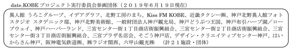 date.KOBEプロジェクト実行委員会参画団体(2019年6月19日現在)