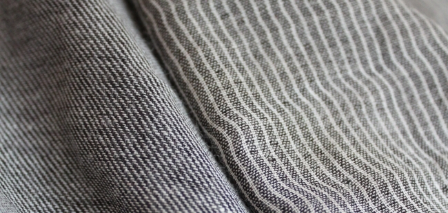 グレーベース地にスタイリッシュなピンストライプを効かせ、快適なパジャマとしてだけでなく、
