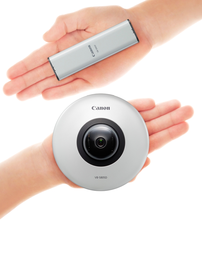 キヤノンは、自社のネットワークカメラのラインアップにおいて、最も手頃な価格帯でありながら高い基本性能を備え、オフィスや店舗などさまざまな屋内環境での設置に適した、小型のVB-Sシリーズ“VB-S805D”と“VB-S905F”を2014年7月10日より発売します。