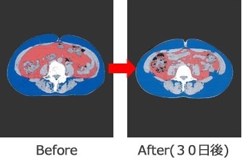 驚くべき内臓脂肪減少効果。1ヶ月間で内臓脂肪面積が40%以上も減少。(※3)