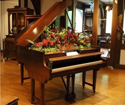 館内には、1920年頃に製作された自動演奏ピアノを花器に見立てたフラワーアレンジメントを展示するなど、花の香りに包まれながら心地よいひと時を楽しめます。