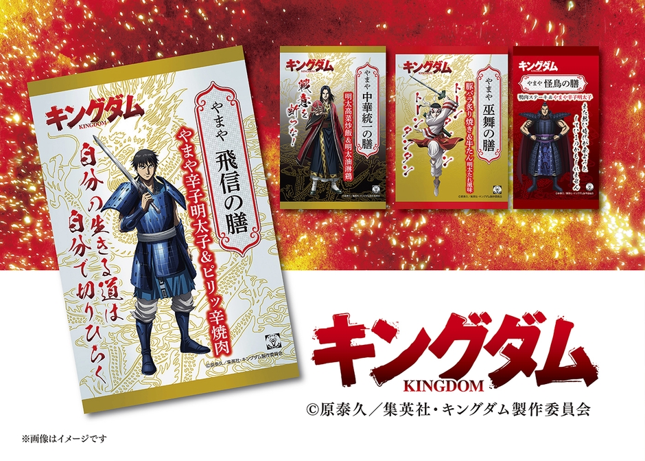 「やまや キングダム弁当シリーズ」はビジネスマンを中心に幅広い世代から人気のTVアニメ「キングダム」と、やまやの「辛子明太子」を使ったお弁当がコラボレーション。