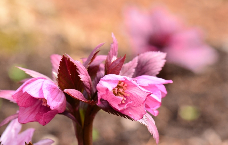 落葉性のクリスマスローズで、春に花がうつむいて咲き、初夏に種を落とすと夏には地上部が枯れ、休眠期に入ります。地中海沿岸を中心とした地域に分布する約20種類のヘレボルス原種の分布域から遠く離れた中国四川省に、隔離分布する珍しい種類で、高さは30~50cm。花は始め紅色をおびていますが後に緑色に変色します。パンダやハンカチノキを発見したプラントハンターのアルマン・ダヴィッド神父が1869年に中国の四川省付近で採取しており、当時その近辺をチベットと呼んでいたことから、学名に「チベタヌス」と入っています。