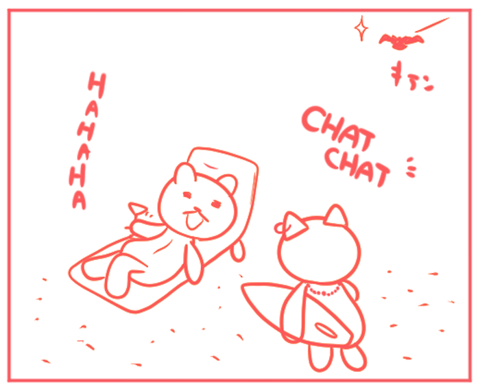 オズとルーの元をぬけだし、ビーチで過ごしていたくまちゃんはすっかり地元に馴染み、ロコの友達もできていた。