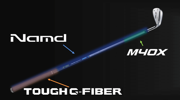 使用している素材は「Namd(エヌアムド)※1」、「M40X※2」、「TOUGH G-FIBER(タフGファイバー)」の3種類。1本のシャフトに上記3種類の先進素材を融合するのは、本製品が初めてとなります。