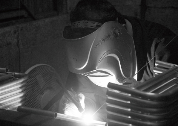 エバニューのキャリーボーンは、東京近郊の小さな町工場で作られています。AIやオートメーションという言葉とはかけ離れた、どこか懐かしく薄暗い工場で、職人が寡黙に手を動かしアルミを曲げ、真剣な顔つきで溶接の火花を飛ばして作っています。プロフェッショナルな道具として、特に山で使うことを考えると乱暴に扱われることや、プロカメラマンが大切な機材を運ぶことが想定して作られています。国産にこだわり、半世紀近く作り続けてきた自慢の逸品ばかりです。