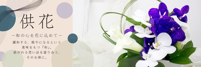 そこでフラワーショップPHOENIXでは、お花もお仏壇の変化と合わせて新しいお供え花のあり方として、リビングで飾ってもおしゃれでモダンなインテリアとして映えるお供え花を『和の心を花に込めて』をテーマに作成・販売致しました。