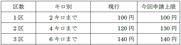 100円(現行運賃と変更なし)