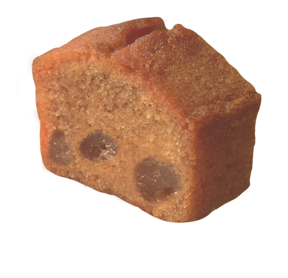 しっとり焼きあげたひとくちサイズケーキの中に、粒状のおもちをたっぷりと散りばめました。ケーキの中でももちもちとした食感がお楽しみいただけます。また、ケーキには“きなこ”を配合し、きなこの香ばしい風味とやさしい甘さで、きなこもちをイメージしたおいしさお楽しみいただけます。