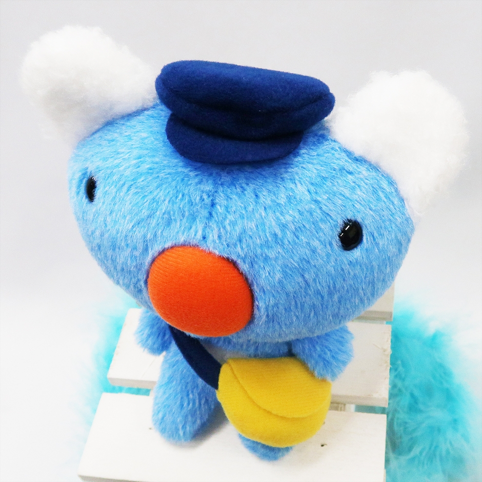郵便屋さんの恰好をしたキュートな「ペネロペ」のぬいぐるみです。黄色いバッグは、ペネロペが生まれたフランスの郵便屋さんをイメージしました。