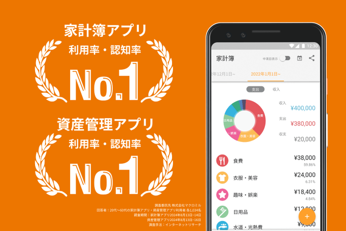 ・家計簿アプリおよび資産管理アプリ 利用率No.1