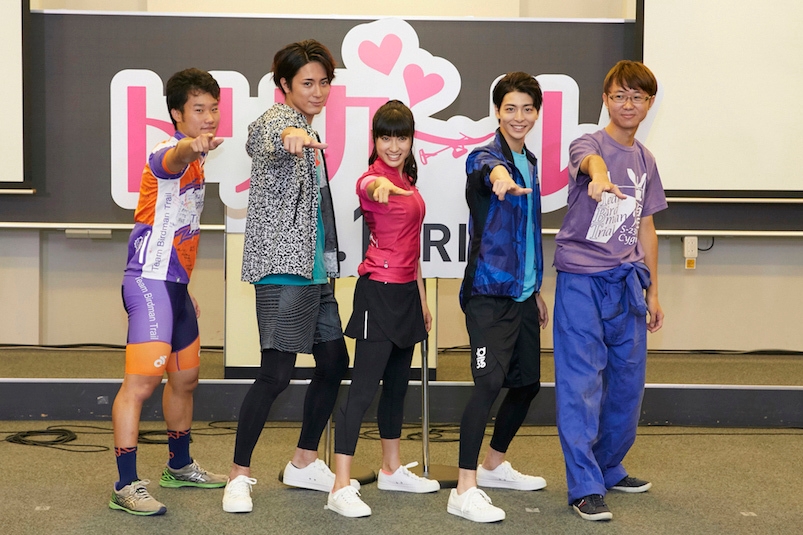 パイロット役を演じる土屋太鳳さんは、「芝浦工業大学は、『トリガール!』にとって親鳥のような存在。こんな大切な場所で皆さんにお会いすることができてうれしいです」と挨拶。先輩パイロット役の間宮祥太朗さんは、「オープンキャンパスということで、ここにいる皆さんがこれからどんな夢を叶えるか楽しみです」と話し、高杉真宙さんは「オープンキャンパス自体が初めてなので、大学にいることに少し違和感を感じています。緊張していますが、宜しくお願いします。」と笑顔を見せました。
