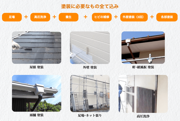 外壁や屋根塗装だけではなく、アパート・マンション・貸し家の外壁内装塗装、工場、鉄骨・鉄塔などの大規模塗装工事まで塗装のことならなんでもお任せください。
