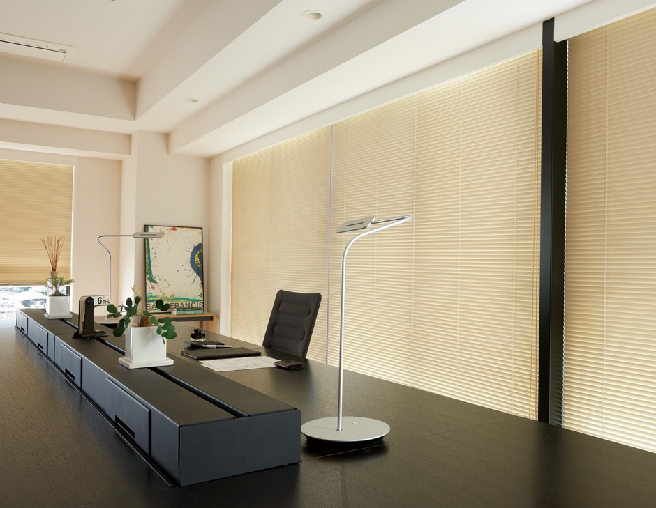 スラット同士が重なる位置に昇降コード穴を設けることで、昇降コード穴からの光が漏れにくくなりました。デスクなどに射し込む光を低減することで、快適なオフィス環境を創りだします。
