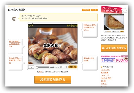 作成したコマーシャルは、簡単にブログやWEBサイトに掲載することが可能です。