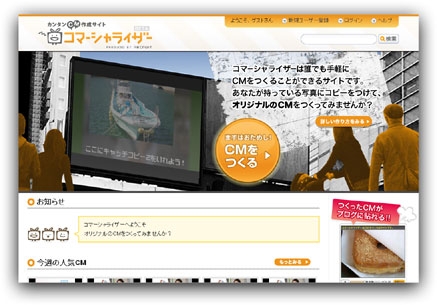 『コマーシャライザー』とは、個人が撮影した画像と文章を入力することで、簡単にコマーシャル風のFlash動画を作成できる無料WEB作成ツールです。