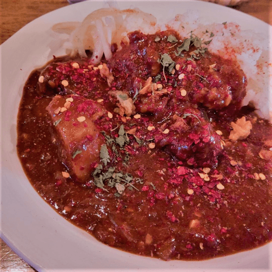 開業にあたりたどり着いたのが、「中華カレー」!!中華のシェフが本気で作ったカレーです。中華特有の奥深い辣がしっかり効き麻が香る特製カレー「麻辣カレー」など中華食材をふんだんに使ったメニューが人気です。中華食材にも一つ一つしっかりこだわります。「胡椒カレー」の胡椒はただの胡椒ではありません。生の胡椒を実のまま煮込んでおります。しっかり噛んで胡椒を噛むとパッと胡椒の辛みとフレッシュな胡椒の香りを楽しめるこちらは飲むカレーならぬ噛むカレーです!鮮烈な胡椒の辛味とオリーブのような胡椒特有の爽やかな香りをお楽しみ下さい。他にも、コリコリとした食感がおいしいキクラゲを使用したキクラゲカレーやパクチーを大量に使用したパクチーカレーなど中華食材とカレーの相性は抜群です。