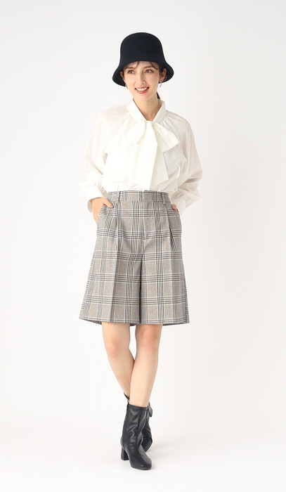 膝上のやや長めの丈感なので、ロングブーツやショートブーツともバランスがとりやすくなっていますダブルブレストのジャケットと合わせれば今年らしいバランスのコーデの完成です。