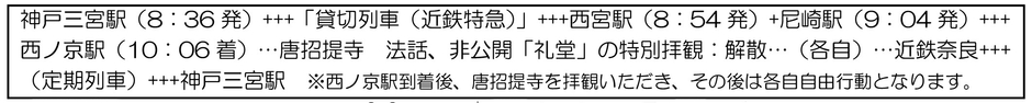 【ポイント】阪神線から西ノ京駅まで初の直通列車!僧侶の法話と通常非公開の礼堂を特別に拝観でき10周年記念弁当が付きます。