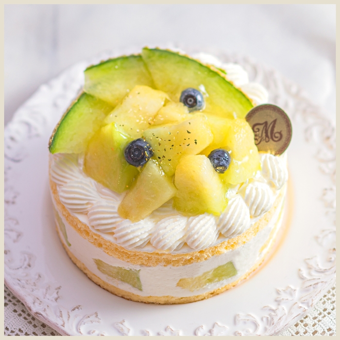 芳醇なメロンの香りを引き立てるココナッツをシロップに合わせ、優しい甘さで口溶けの良いショートケーキに。