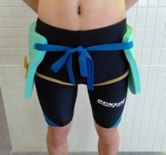 ※3:水平姿勢を保つためには、体の重心と浮心のズレ幅を小さくする必要があり、本商品を左右両腰に装着することにより、水中で沈みがちになる下半身の浮力を補うことで、これをサポートします。(浮心:液体の表面に浮かぶ固体に働く浮力の中心。水に浸かっている体の体積において上向きに働く力の中心のこと。)