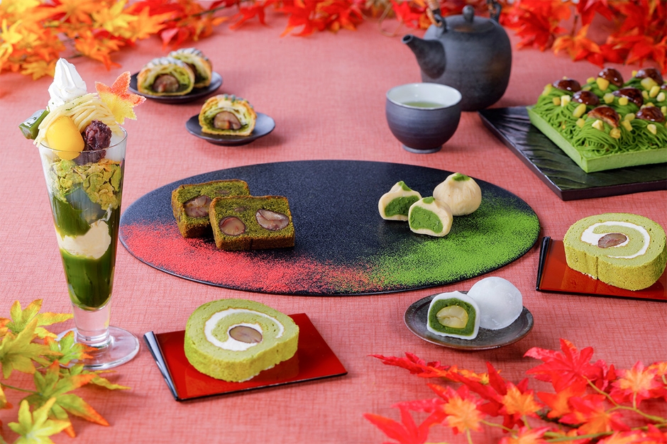 伊藤久右衛門本店が店舗を構える宇治には、興聖寺の琴坂など、紅葉の名所がいくつもあり、秋には多くの観光客で賑わいます。紅葉を鑑賞した後に当店へ立ち寄られるお客様も多く、この時期の茶房は、最大120分待ちとなります。“京都の四季を大切にする”をコンセプトに誕生した秋限定の「紅葉パフェ」は、抹茶パフェをベースに、鳴門金時いもや栗の甘露煮、紅葉型のゼリーを添えることで、見た目も華やかな秋のパフェに仕上がりました。抹茶の風味をより強く感じたい方は、お好みで別添の抹茶をかけてお召し上がりいただくこともできます。