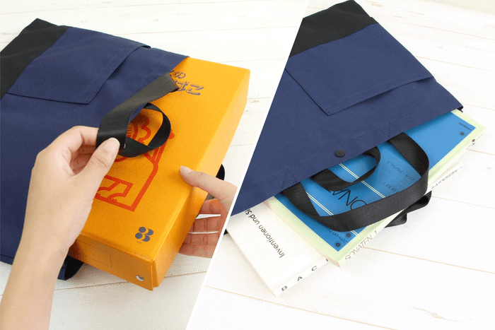 お道具箱もマチ付きなので、横向きにラクラク入ります。ピアノ教本やスケッチブック、絵本などもたっぷり入るのでいろいろな場面で大活躍します。