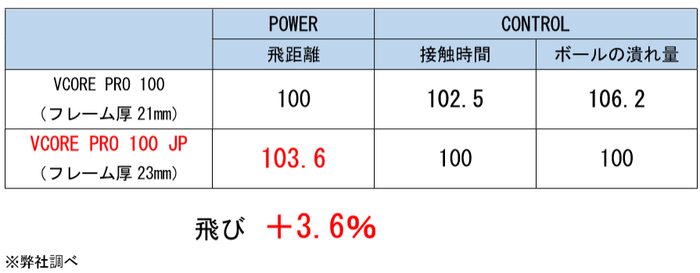 日本人と欧米人の体格差はパワーの差に直結し、スウィングスピードやボールスピードに違いが表れます。この体格やパワーの差を補うべく、日本人の体格に合わせ、VCORE PROの性能に新スペックでパワーを加えて開発したのがVCORE PRO 100 JPです。